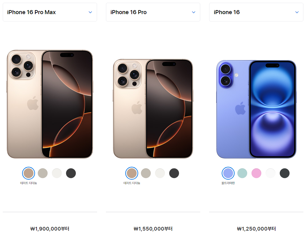 - 아이폰 16 프로 맥스: $1,199 (128GB 기준)